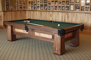 ive been making pool tables now since about 1989 .... hmmm almost 25 years? seems like a blink. i was first captivated by pool in high school, at the bowling alley, at Frys, the luncheonette with two pool tables in the back, one for an open 9 ball game (50 cents and a dollar) and one for the old men to play one pocket on. high chairs to watch too. there was also another 8 table room on the second floor above woolworths where we hung out and played games to 25 or 50 for time. loser paid for the table time. i got hooked by the geometry, the skill building, the camaraderie and pool hall culture. and, in one of my fondest high school memories, my father, who was also good with a stick, took me into the city to play at Allingers, the famous philly pool room where they still had girls come around and rack your balls up and a pretty fair sized gallery section to watch the action on the hot tables. it was something. but i digress ... the table above was a redo of an old brunswick table i bought with peeling veneer and a broken leg. i was making it for my boys, but a client (for the second time) bought the table as i was working on it. click the photos to enlarge them.